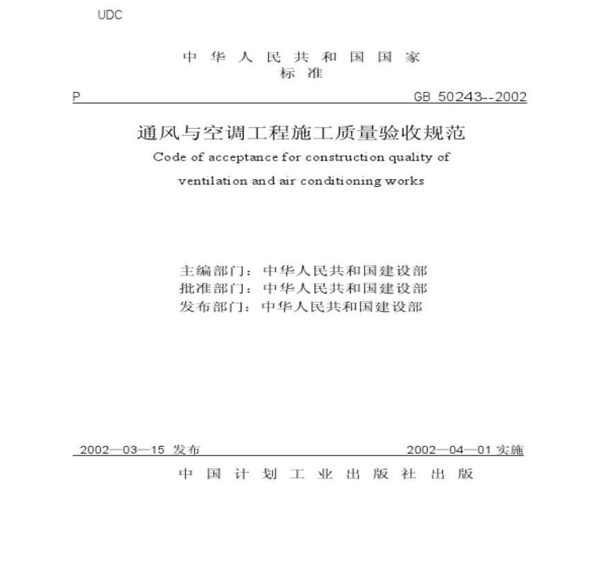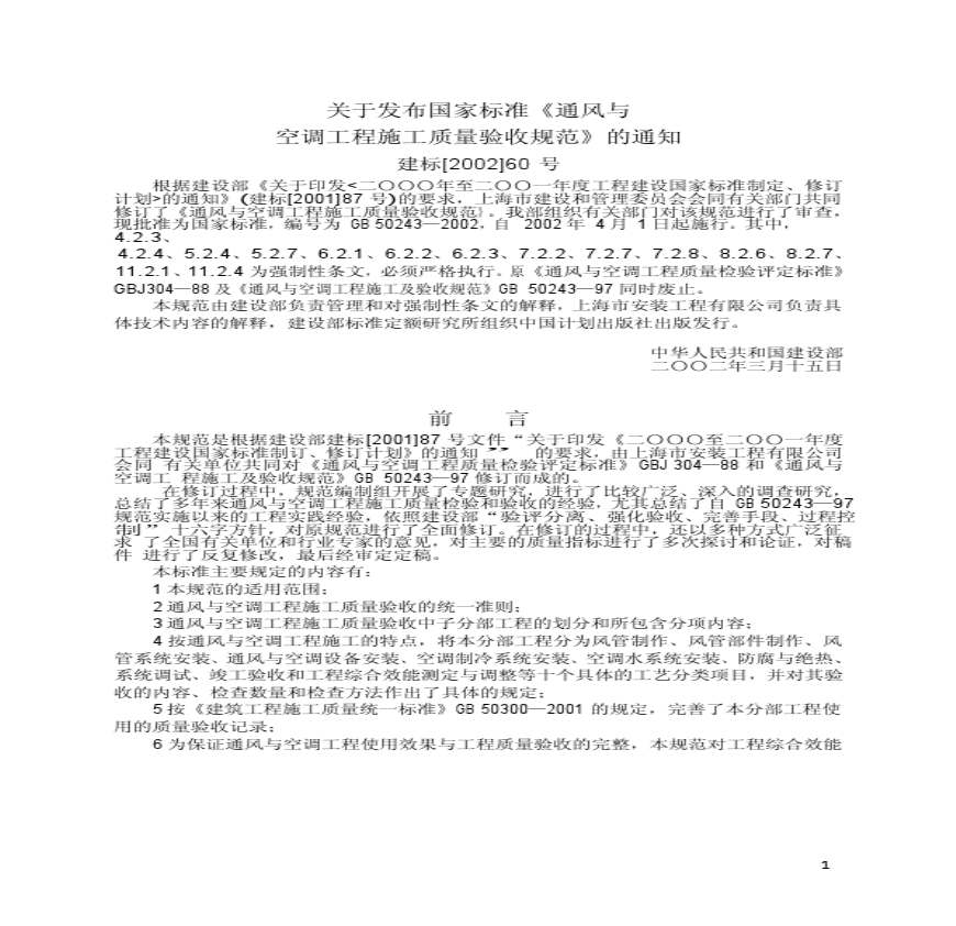 最新《通风与空调工程施工质量验收规范》GB50243-2002资料下载,喜欢的朋友可以下载收藏!