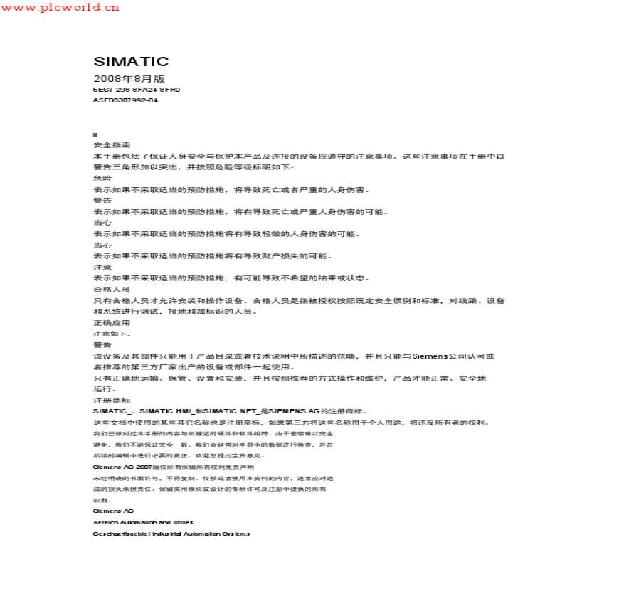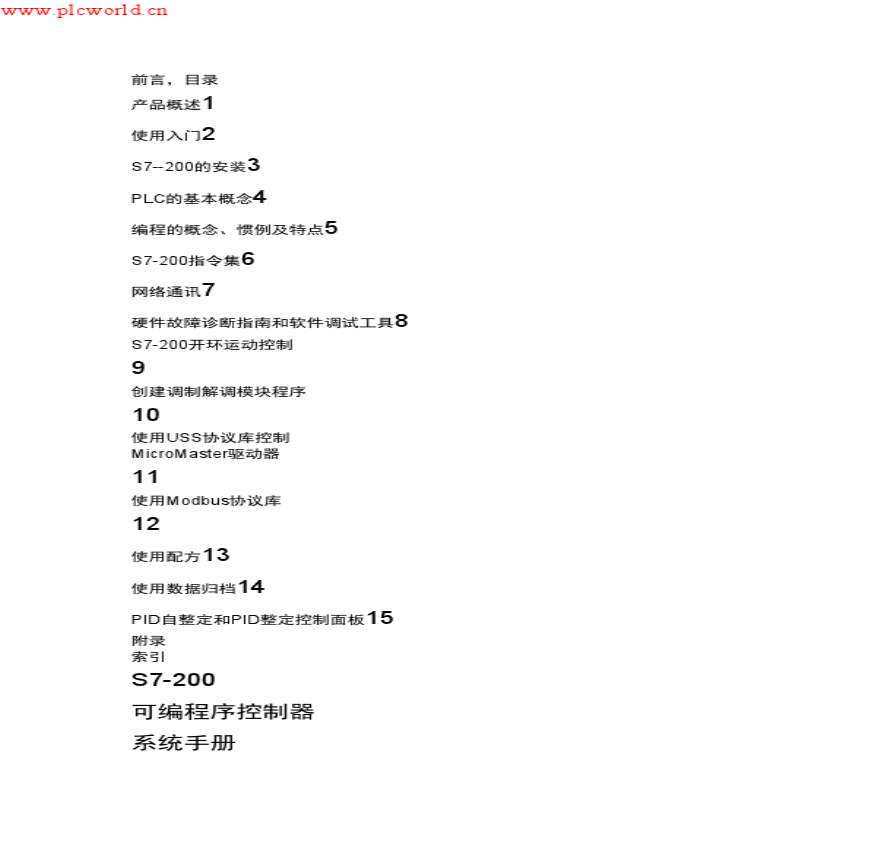 中国 《 PLC中文》 学习资料页 前言,目录 产品概述 使用入门 的安装 PLC的基本概念 的概念惯例及特点 指令集 络通讯 硬件故障诊断指南和软件调试工具 开环运动 DFA 介绍了关于的详细说明,提供S更多下载资源、学习资料请访问CSDN多多文库频道 多多文库首页开发技术其它 PLC中文介绍了关于西门子S PLC中文的详细说明,提供的的技术资料的下载。