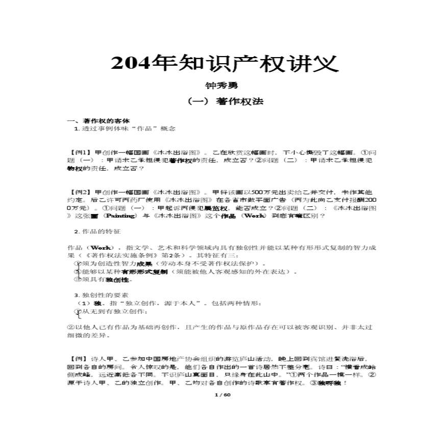 钟秀勇2014知识产权讲义资料下载,喜欢的朋友可以下载收藏!