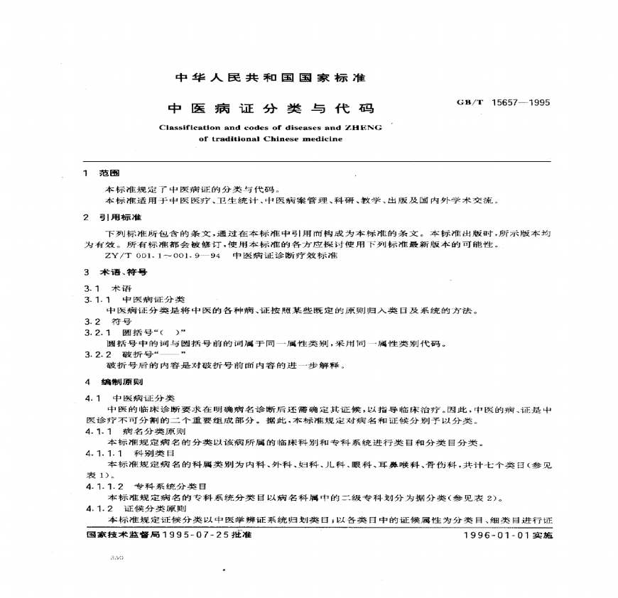 ÖлªÈËÃñ¹²ºÍ¹ú¹ú¼Ò±ê×¼·¶Î§±¾±ê×¼¹æ¶¨ÁËÖÐÒ½²¡Ö¤µÄ·ÖÀàÓë´úÂë¡£
