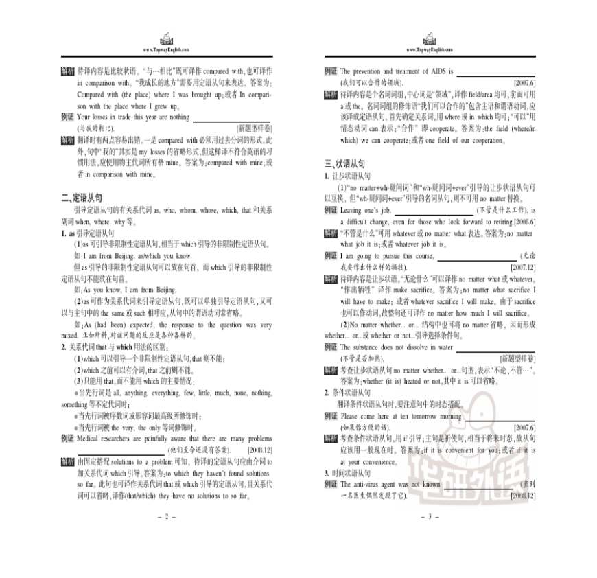 x 分享于 :: 文档页数: 页 文档大小: K 文档热度: 文档分类: 待分类 文档 学习资料页 汉翻译的一 正确认识翻译从中国人进行的翻译定位上看,无论是英译汉还是汉,其根本问题都在译者的英语水平或造诣上英译汉的题型,关键在于理解原 学习资料页 A COURSE OF CHINESEENGLISH TRANSLATION,Er,第一章翻译原则简介第二章翻译的过程第三章汉英词汇现象的对比第四章词的翻译第五章句子的翻译上第六章句子