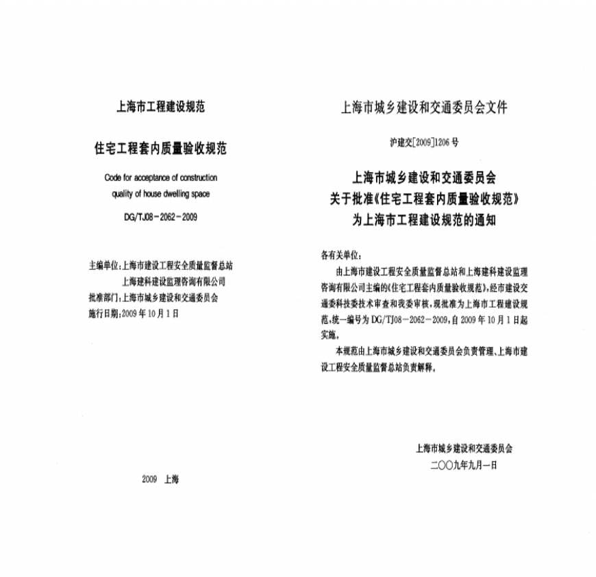 住宅工程套内质量验收规范 DGTJ08-2062-2009(J11493-2009).pdf 免费下载
