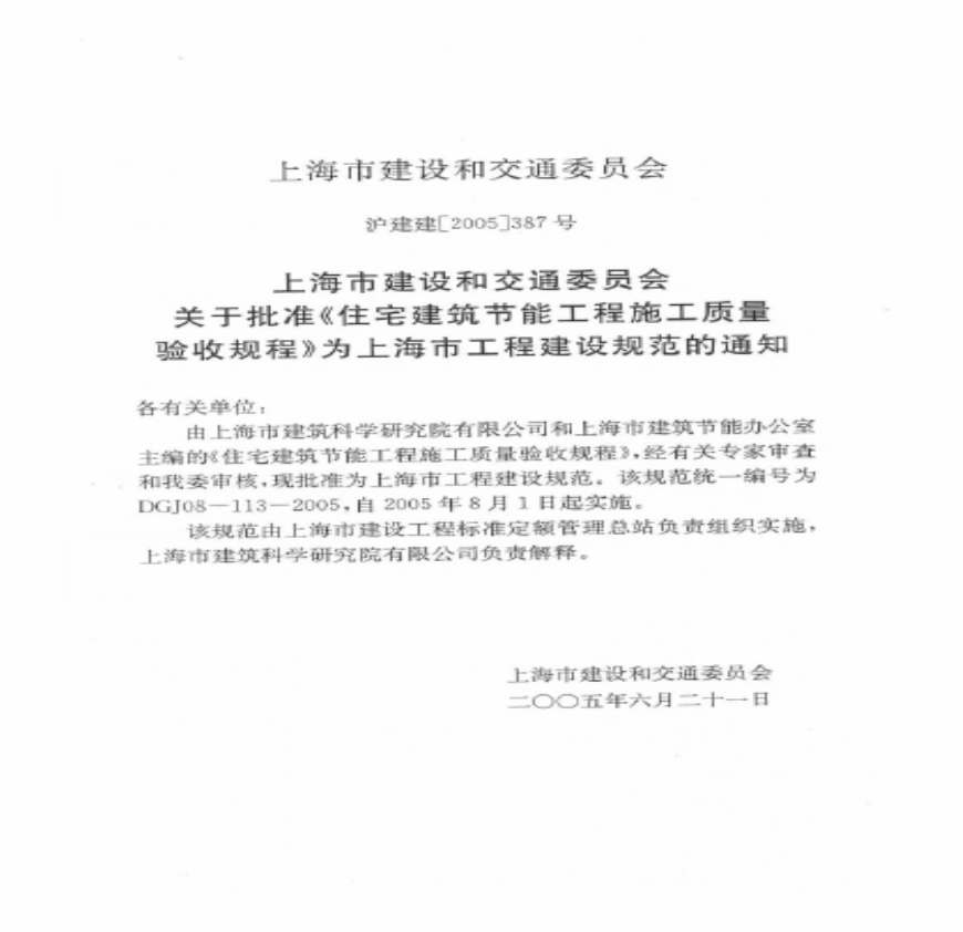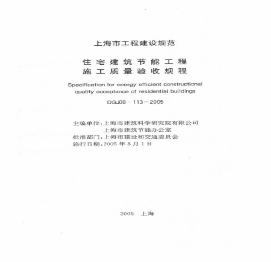 住宅建筑节能工程施工质量验收规程 DGJ08-113-2005.pdf 免费下载